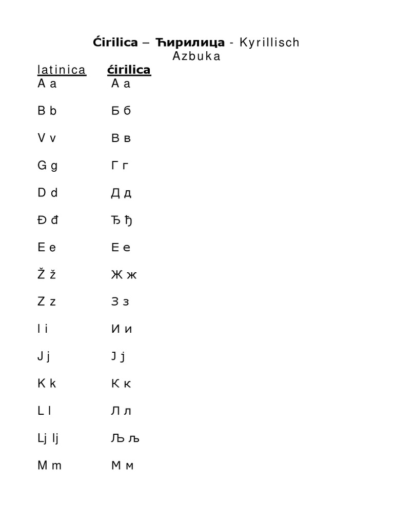 Tabela za učenje ćirilice. Crna boja isto ili vrlo slično u ćirilici i latinici а е ј к м о т plava boja sasvim razli č ito u ć. Kopirajte ili ukucajte tekst i pritisnite prebaci u latinicu. Poslednje državne tajne jugoslavije i zemalja koje su stvorene na njenim ruševina.
