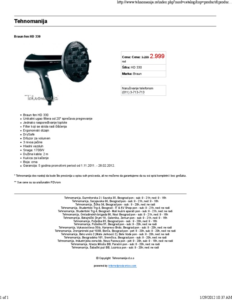 Braun Fen Hd 330 5 God Garancija