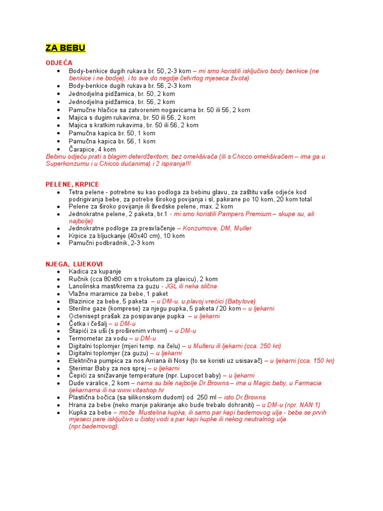 Popis Osnovnih Stvari Za Bebu Organizirajte Se