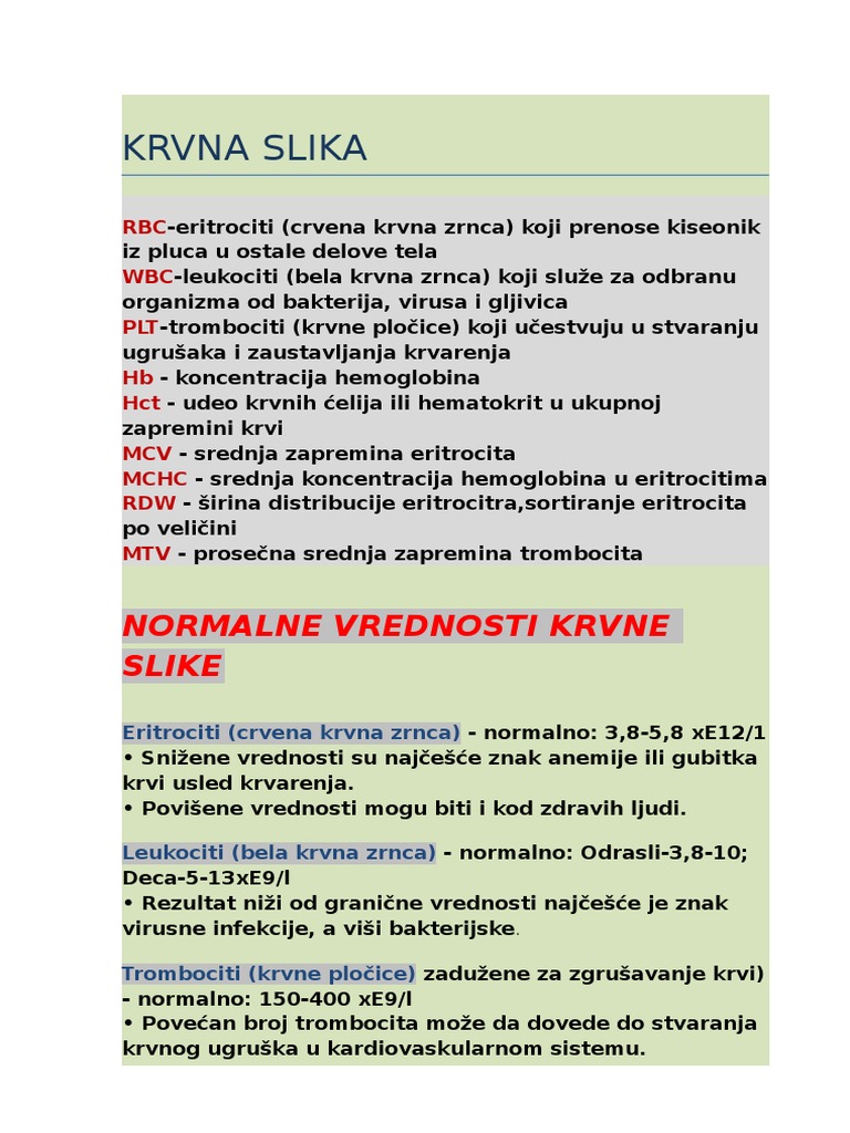 Krvna Slika Vrednosti