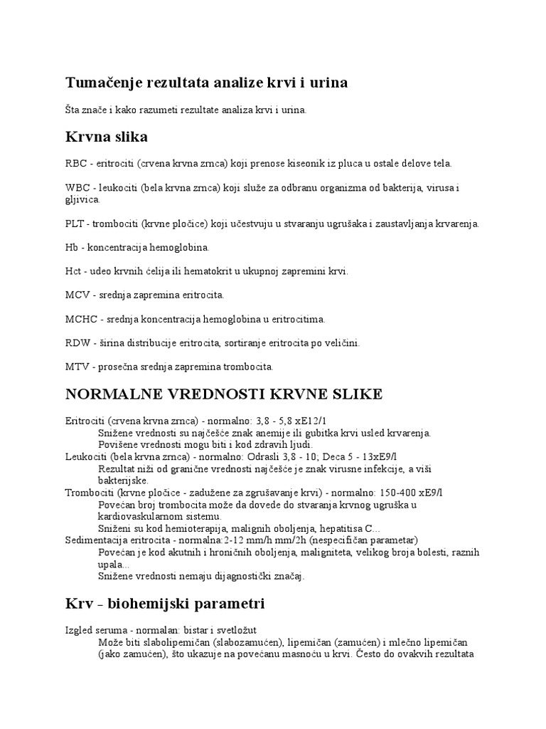 Tumacenje Rezultata Analize Krvi I Urina Roditeljsrbija Com