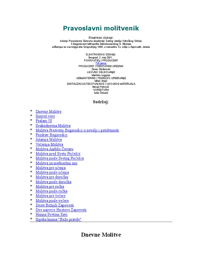 Vecernje Molitve Posnajela Rs