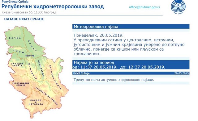 Vreme tokom cele godine. Sva mesta vremenska prognoza beograd. I u utorak biće pretežno oblačno i sveže sa kišom pljuskovima i grmljavinom. četiri dana kasnije stiže naoblačenje s mogućom kišnom i slabije zahlađenje.