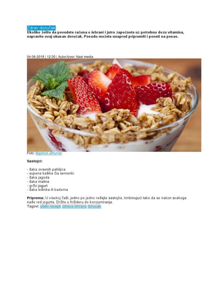 Dijetalni Zdrav Dorucak Dijeta Za Brzo Mrsavljenje