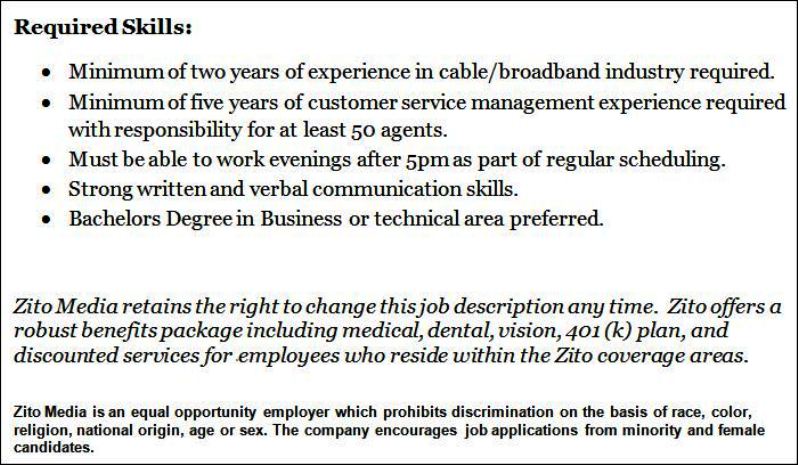 Solomon S Words For The Wise Zito Media Has An Opening For A Customer Service Manager For Inbound Call Center